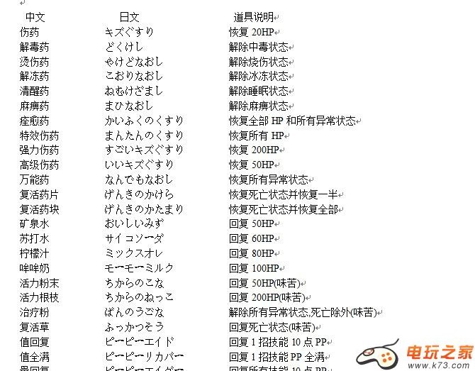 以下是道具,对于上一版去掉了英文,只留中日对照和说明,黑白2新加入的某些道具或重要道具没有数据,所以没有加入