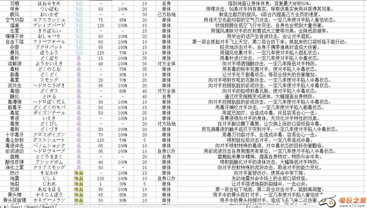 然后是技能表,同样的中日对照,想找技能可以先在筛选那里选择属性,然后再找,觉得这个做的还是可以的~~~~
