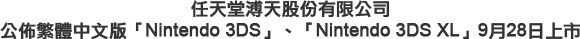 3DS|3DSXL中文版预定9月28日发售:港台版不再是梦