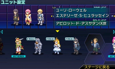 不但可在本作品中的场景地图(フィールドマップ)中设定『双人单位(ペアユニット)』,在战斗中使用各种招式而过关斩将,也可以在『双人单位』的单位设定画面上,任意指定「独秀单位」来进行队伍组合。