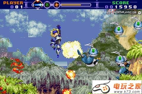 2.爬上敌人的空中"军舰"一阵扫射后,MOON2的版底BOSS出现了,站在下面的飞船上是没用的(BOSS放炸弹炸死你)上去和他单挑,看准BOSS冲刺的时机跳起,K之~K.O