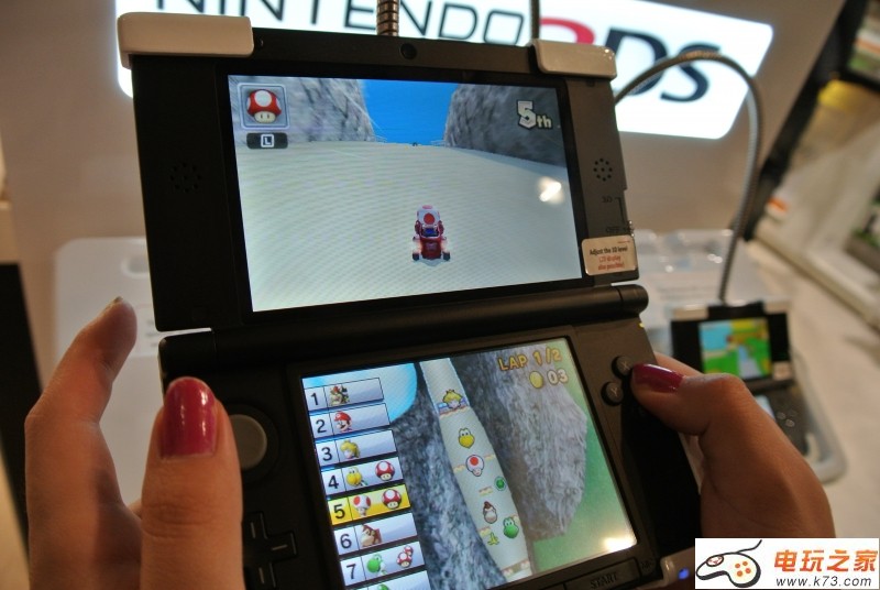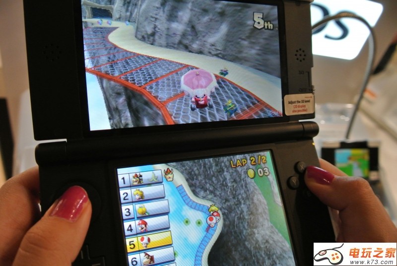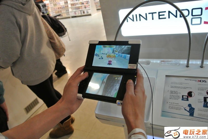 我是下午去试玩的,只有一个游戏,《马里奥赛车7》试玩版。之前3DS上出的马里奥都玩过了,这次用3dsxl玩只能说太爽了,上屏巨大无比,并且画面精细毫无马赛克(相对原版来说,有些游戏本来有锯齿和马赛克就没办法了)。只用肉眼可以说质量和3DS的画质几乎是完全一样的了(开了正常3D的情况下)。大家可以点击小图看大图,再把图片缩放看一下。