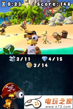 根据任天堂网站的报道,《疯狂的鸡海盗》是一款点和射击动作游戏,你的目标就是将那些急速穿过小岛并进行绝望的反击的小鸟们的射入波浪中。你只有90秒通过杀害的这些海盗来完成你的入侵和收集所有隐藏的宝藏。