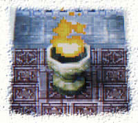 站在塔前方的有纹章的石头上使用奇怪的笛子 |