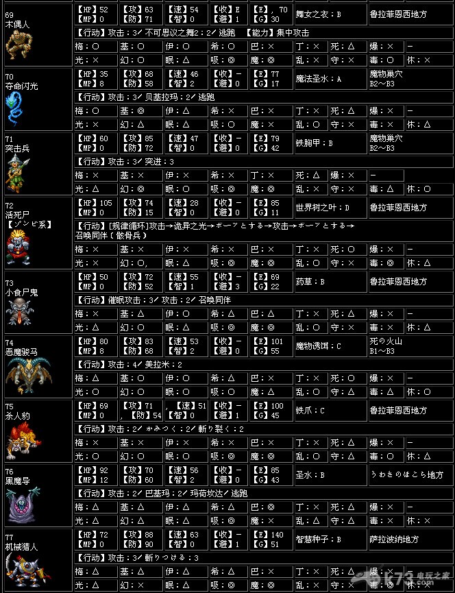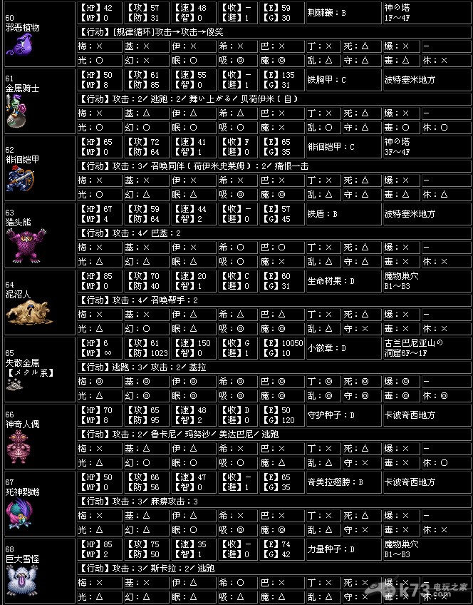 耐性…怪物对抗咒文、特技时的耐性,一共有一下17种