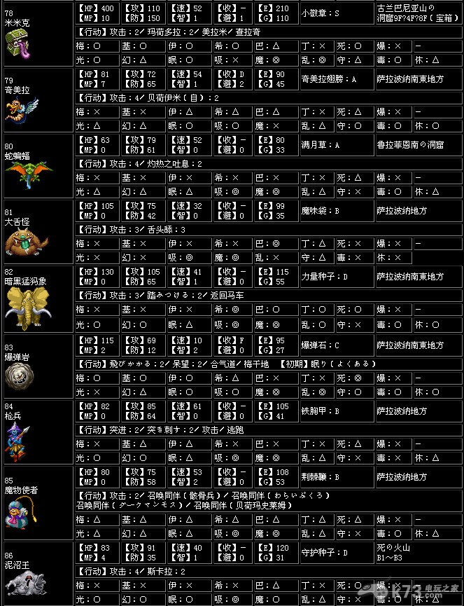 勇者斗恶龙5全怪物图鉴及出现场所一览