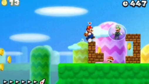 此外,本作还有双人合作闯关模式,以及挑战玩家技术与对关卡熟悉度的抢金币模式。在抢金币模式缔造的纪录,可以透过3DS的擦身功能与其他玩家分享。这些要素结合在一起,究竟会迸出什麽样的火花呢?