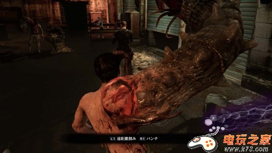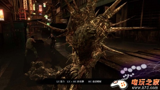 玩弄着三个人的新型怪物。到底有没有弱点呢?另外,并不是只有新型怪物而已,同时也可以看到殭屍的身影。可以预想的到这是相当困难的一场激战。
