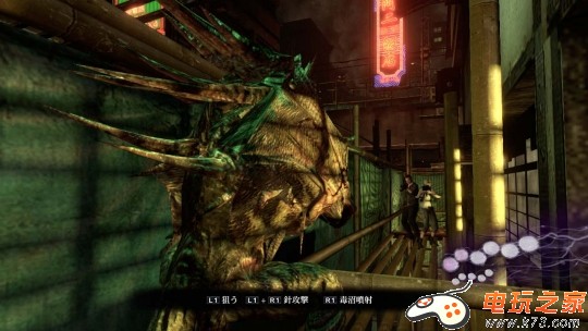 挥舞着巨大长爪般的触手,袭击而来的新型怪物。这是新型的 B.O.W. 吗?另外也有艾达援助新型怪物袭击海莲娜的场面。