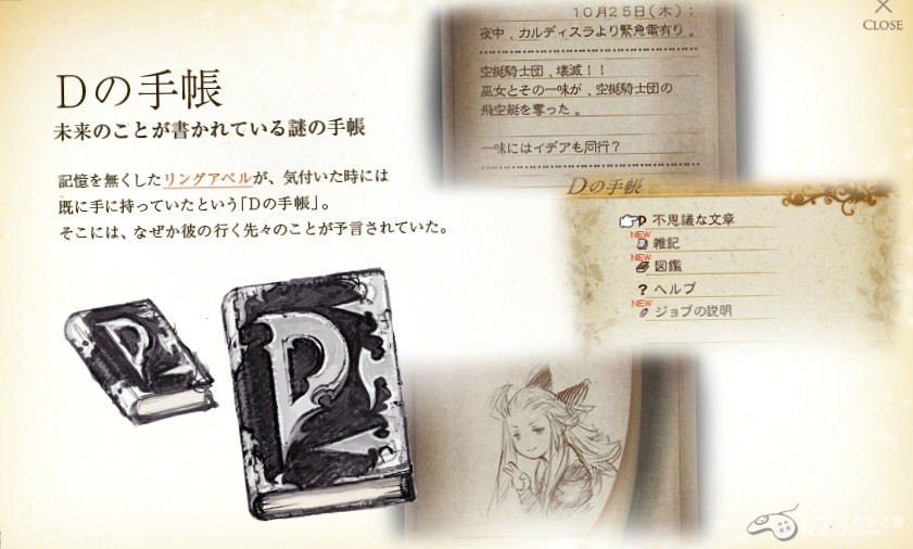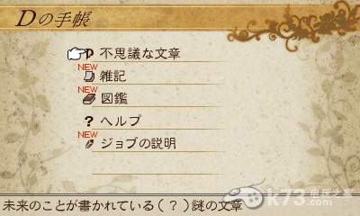 这个“D之手帐”可以记录玩家在冒险过程中发生的相关的事情,玩家可以利用它进行剧情的加顾,帮助顺利的进行剧情。当然,“图鉴”系统也在本作中被引入。