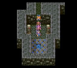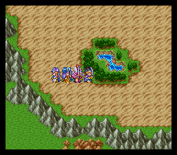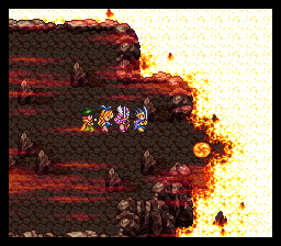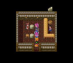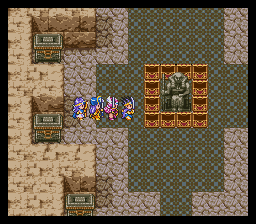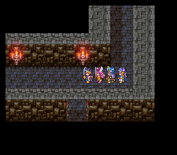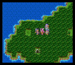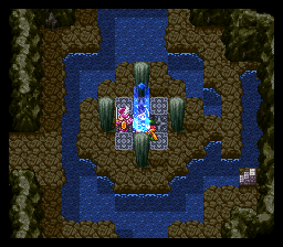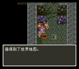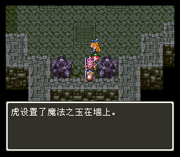 进入山洞后发现路被墙壁封住了,在墙壁前使用魔法之 玉就可以炸掉墙壁继 续前进了,前面的宝箱里有重要道具——世界地图,得到后 下楼梯。这个迷宫比较 麻烦,要兜个大圈子,最后从传送门才能出去。
