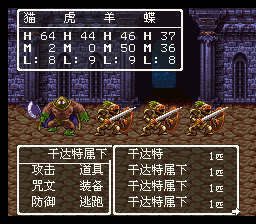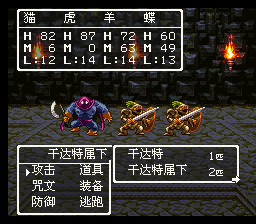 BOSS战:敌人有4人,而且攻击力较高,防御也不弱,由于甘达特有时会防御 ,所以不如先击败3个较弱的手下,然后集中力量对付干达特,使用魔法对敌人伤 害效果不错。敌人攻击力不低,注意HP的回复,有机会可以给较弱的同伴加加防御 ,等级够高的话可以学会斯库鲁多了,此战不是太难。