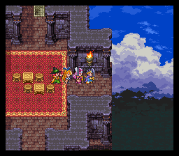 先在城里四处搜刮一番,城堡左侧地下的门还暂时打不 开,里面的2个宝箱先 记着,以后再回来拿。对国王对话得知名叫干达特的人盗走 了金冠,作为勇者当然 决定要去把金冠夺回来。从城堡内左上角楼梯到达顶层, 与门里的人对话得知干达 特在象帕尼之塔里,看来下一步的目标也知道了。??