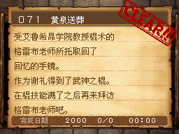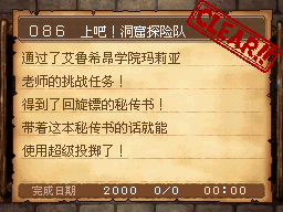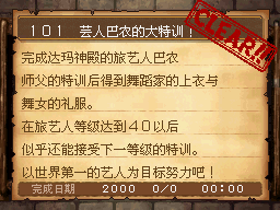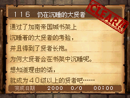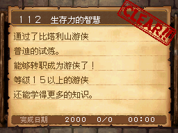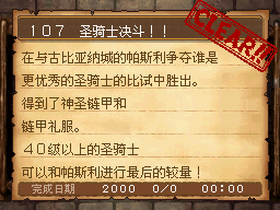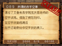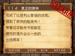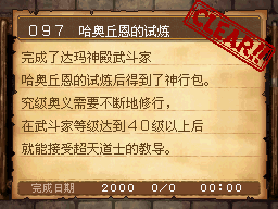 武斗家LV40以上,和达玛神殿外的超天道士对话获得该任务。 PS:用普通攻击的会心一击杀死10只德米尔之里附近的161号巨像兵。 作为谢礼得到武斗家秘传书(可以将这场战斗积累的气力继承至下一场战斗,切换地图后无效) |