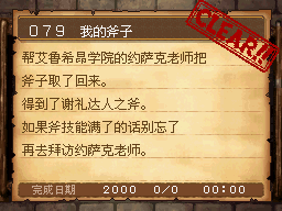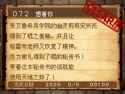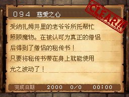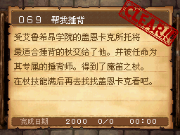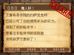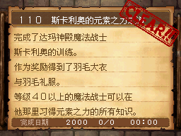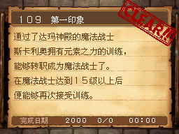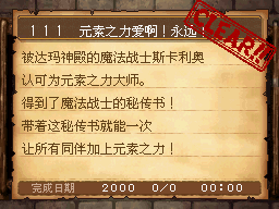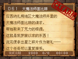 魔法师LV15以上,达玛神殿的宿屋睡觉时获得该任务。 PS:装备妖精给的妖精之杖,用火球术梅拉打死10个怪。 作为谢礼得到了魔法之服和魔女之服。 |