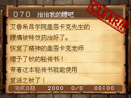 杖技能达到100,并解决艾鲁希昂学院的事件后。西北长凳处坐着的盖恩卡克对话。 PS:先到学院内2F右边找菲伊老师对话,然后去德米尔火山打倒165号岩浆人并取得灼热熔岩回来,还要蛤蟆油哦。 作为谢礼得到秘传书“复活之杖” |