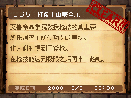 枪技能30以上,并解决艾鲁希昂学院的事件后。学院左侧的体育館内的莫里森对话。 PS:必杀的试练;在萨玛隆北面的洞窟B1F,用枪系附带即死效果的技能致命突干掉3只89号金属史莱姆塔。要知道对金属史莱姆系使用即死的概率真是不怎么高啊。 作为谢礼得到斧枪 |