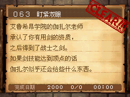 剑技能30以上,并解决艾鲁希昂学院的事件后。学院内1F教会里的迦扎尔。 PS:圣修塔因城西南方向的小岛,调查红色看板的背面,并返回报告。 作为谢礼得到战士之剑 |