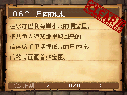 通关并获得天之方舟后,来到世界地图最右上的小岛。在下方洞穴内调查骸骨旁的纸条,可以获得这个任务。 PS:本次任务是要打倒60号鱼人海贼取回信,在草之海滨附近的海和海边洞窟都会碰到。 作为谢礼得到藏宝图 |