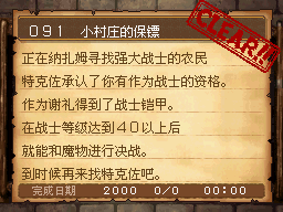 戦士LV40以上,纳扎姆村,左下角栅栏边上的农夫特克佐。 PS:本次作战目标是德米尔火山的166号龙士兵,同样是用战士技能口哨激怒后打倒(无需会心),连续打倒10只。 作为谢礼得到战士秘传书“自动反击” |