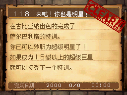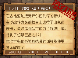 超级明星LV40以上,古比亚纳城左上的舞吧内,与萨尔巴利塔对话。 PS:用超级明星的技能:“化妆”大幅提高自身魅力,然后使用灯光使敌人愤怒并打倒! 作为谢礼得到超级巨星之书(把这本秘传书带在身上就可以使用黄金骤雨了) |