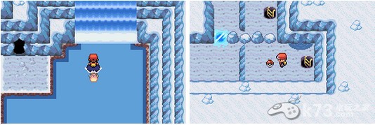 在科拿家右面使用冲浪进入冰爆洞窟,前面的大瀑布暂时上不去,先进入左面的洞穴。这里的小块冰面踩两下就会掉下去,然后可以用梯子再爬上来。利用这点到右下角拿到HM07攀瀑,这样就可以登上大瀑布了。