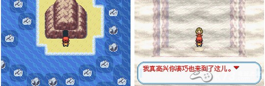 从1岛往右冲浪,踏上光辉之路。往上走会发现一个山洞,进去是灯火温泉,在这里能回复PM状态。和上面的一个老爷爷对话,他会给主角HM06碎岩。