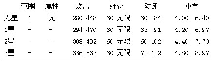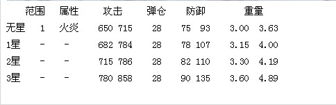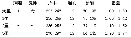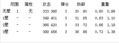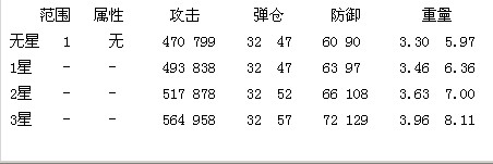 以此类推 攻击 弹仓 防御 重量 前为初期 后为改造后