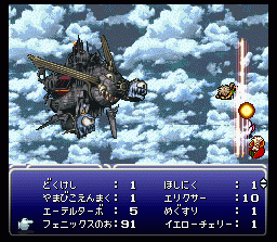 ·道具收集。把拍卖场的两个幻兽魔石,和帝国北边村庄的魔石都买回来,总花费33000。世界崩溃后买可以便宜点。用艾德加带队回费加罗城购入必须的恢复道具,不死鸟之尾99个,烟玉、影忍的影分身卷轴若干、剩下的钱在魔导士之村大量购入三种属性杖, 雷可以多买以应付接下来的帝国空军。