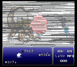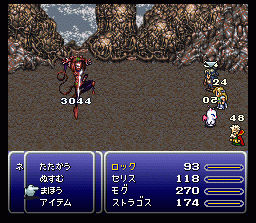 嘎走后,重整队伍:洛克、莫古、斯特拉哥斯。洛克的作用说过了,万年小偷+保姆,而莫古的LV11将起到决定性的作用。6级的影忍加入后,重新走一遍,来到UltimaWeapon前。全员换上リフレクトリング和エルメスの靴。世界崩溃前最后一场恶战开始了……