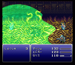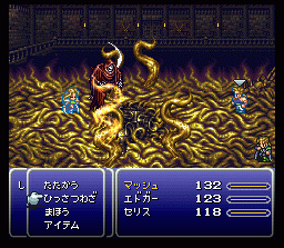 BOSS战结束后艾德加归队。在费加洛城换国王在队伍前面补充道具(半价)。另外记得买下艾德加崩溃后最有用的机械:ウィークメーカー。这个机械可以在战斗中随机增加敌人的弱点,甚至可以将敌人本身吸收的属性变成它的弱点。