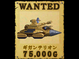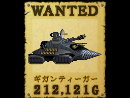 通关之后追加的新赏金首,也是必须在猎人行会中打听消息才能遇见,出现地点在エルルース西边,可以使用猎人的技能来确认是否有出没。该赏金首为随机遭遇战,有可能随着杂兵一起出现。战车战。HP65100、攻击1500、防御300、速度120,抗性毒100。 攻略:这个BOSS之强大到完全可以称重装机兵系列第一的程度——LV99、攻击力高的不像话,更是有着完美的迎击能力,战斗前不做精心准备的话必然被全灭,即使我方全员LV99,战车装备全都是顶级店货,去打它还是非常吃力。要以战胜试作型高达的战车为基础,再加上潜艇上找到的装备。三门迎击S-E必不可少,齐射能力也不能少。整个战斗过程中我方的主力输出一直大炮orS-E齐射即可,但会在它的迎击下打些折扣。 |