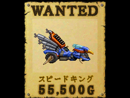 在边路镇旁的高速公路上出现的摩托车状怪物,对速度慢的家伙没有任何兴趣。当玩家接了“高速路上的镇魂曲”这个任务之后,出入边路镇,极速之王就有一定几率会出现在高速路的东段,此时需要使用火箭助推器追上它才会进入战斗。战车战。HP6000、攻击450、防御180、速度333,抗性毒100(火冷音光△毒X)。 攻略:非常强的一个赏金首,强在两点——其一是会使用多连导弹发射器,范围攻击,每次9连击,总伤害非常恐怖;其二是打了几个回合之后会逃跑……逃跑之后再进入战斗,它的HP已经补满。因此速攻成了必然。我方必须拥有一齐射击的手段(如大炮齐射、S-E齐射的C装置等),否则难以快速解决它。建议有一个速度高的角色坐上摩托车,每个回合都使用发烟弹或者云之素等降低命中的道具,否则难以在它的导弹阵下生存,尤其是狗狗。由于它会掉最强的引擎,因此避免不了被多次刷刷刷的命运。 PS:某些老金玩家曾遇到开了必掉也不会掉落的悲剧状况,那是因为没有使用火箭助推器来追赶它的缘故。 |