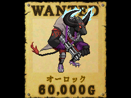 剧情BOSS,冷血党No.1。虽然在通缉令上无法看出来,其实这位MM是个黑丝袜眼镜美女。也是从loli时代开始倒贴给最终BOSS的MM,话说这和天幻著名的流老湿的loli怎么那么像……汗……地点在蒸汽之柱地下,和她战斗前可以和她对话进行存档。白刃战。HP7500、攻击350、防御100、速度200,抗性无;变身后HP15000、攻击600、防御300、速度280,抗性电100,弱点无,EXP30000,钱2000。 攻略:在锈色少女镇的任务剧情中可以和她进行战斗,此时的她没有用全力,连个东西都不会掉就溜了。再次遇见时已经到了最终BOSS前了,变身前的她和第一次见面时一样脆弱,还是会用诱惑攻击。变身之后就夸张多了,也难看多了,什么范围攻击啊,连续攻击啊都招呼过来。如果此时我方的装备有艾露露斯的水平(蒸汽之柱中能找到不少),LV在35以上的话,还是不会太难。最麻烦的其实应该是她掉落的道具吧?三个都是极品,你会选择哪个呢? |