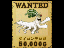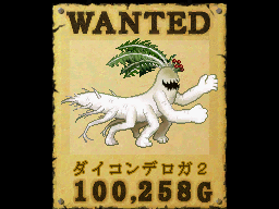 盘踞在研究所栽培着萝卜的温室中危害人类的萝卜型怪物。需要先完成寻找钥匙男的任务,然后把温室先调整成下大雨,过了大概10分钟之后再调整成晴天,温室的环境就会变成彩虹,萝卜就会出现。白刃战。HP8000、攻击550、防御200、速度230,抗性毒80、冷30(冷电音光△毒X)。 攻略:一个会钻地补满HP的棘手萝卜,正在补充HP时抗性全满。由于萝卜会补血,所以要么速战,要么永远打不死。把摔交手或士兵培养起来,用最猛输出,如果对方总是补血,逃跑,继续练级。 |