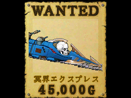 西大陆边路镇南方有条破旧的铁轨,冥界列车就是徘徊在那条铁轨上的亡灵,每过一段时间,它就会从铁轨的西北端出现,直往东南方行驶。只要在铁轨上等待,过了一段时间即可发生战斗。战车战。HP5000、攻击650、防御220、速度120,抗性毒100(火冷音光△毒X)。 攻略:和极速王者相比,这个BOSS的要容易对付点,但也不是等闲之辈。攻击模式比较单一,发射两发大炮然后突进攻击(我方全体受伤的同时自己会受到伤害),如果我方战车有迎击功能的话会比较简单。受到一定伤害后转为第二形态,此时不会再傻傻地使用突进了,而是和极速之王一样使用导弹雨进行攻击。受伤之后还会转变成第三形态,此时是使用2连大炮和全体攻击且高会心率的巨大大炮进行轰炸。因为是持久战,因此此时我方的实力甚至要比打极速王者时要高,否则胜算不大。 |