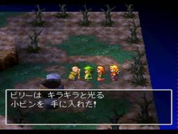 传送来到一个小岛,岛上就只有一个村子ダイアラック(Dialac),村里所有的人都被石化了,只有村子上方井旁边的一个老人是正常的,逐个调查被石化的人,每个人对话两次即可,再和他对话后会得到可以解除石化的天使の淚(AngelTear),村子里的人被石化太长时间,已无法使用天使の淚(AngelTear)让他们复原。老人要求主角一行在村子里住一晚,来到宿屋休息,晚上主角被吵醒,出来逐个调查那些被石化的人,会浮现当时的一些场景,之后调查左上方门被一个中年男子,回忆结束后他的石像会消失,进去调查屋子里的书柜可以发现小孩留下的字条。继续回宿屋休息,第二天来到左下角墙上乱画处,可以找到隐藏楼梯。