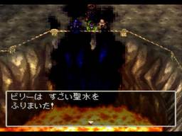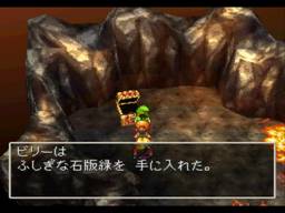 在炎の山(Mt. Flame)的火山口下面会遇到魔物,干掉后得到ふしぎな石版青(Aqua Shard)!回到火山口,这里冒起来一阵黑烟,在火山口上方使用すごい聖水(Holywater)(之前在叔叔那里得到滴,先前没拿就回现实世界去叔叔家拿),黑烟就会被消去。