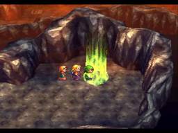 来到炎の山(Mt. Flame)的最下层可以找到ふしぎな石版緑(Wind Shard)!炎の山(Mt. Flame)里可找到60G 、80G、350G、やくそう(Herb)、どくけし草(Antidote)!回到火山口,可以通过传送池塘到达神殿的红色小屋!