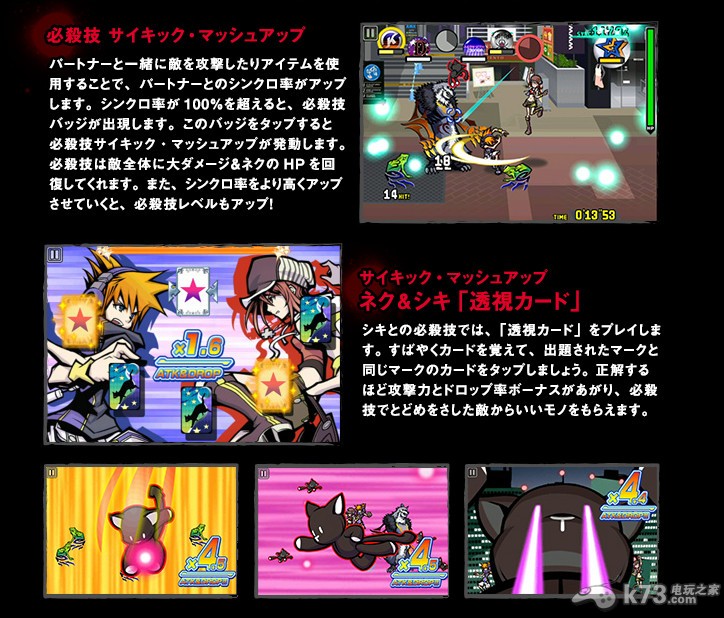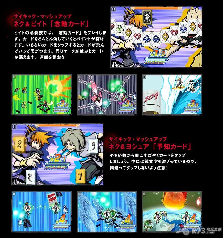 必杀技发动时起动的【念动卡】,只要将相同的卡片进行消除就可以发动了。【预知卡】后面会有一些文字注示,玩家需要特别留意。