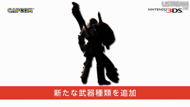 CAPCOM 开发,预定2013年春季推出的N3DS狩猎动作游戏《怪物猎人4(Monster Hunter 4)》于今日举办的Wii / N3DS 新作游戏线上发表会「Nintendo Direct」中,公开将会登场全新类型武器,并有截然不同的操作。而关於新武器也只公开快闪了一枚剪影,供玩家想像猜测其全貌。