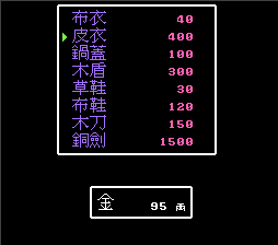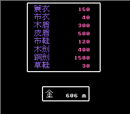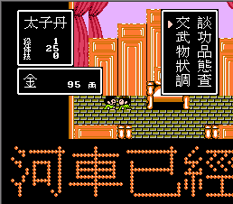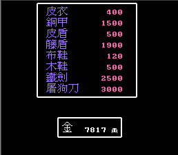 之后进宫殿见夏无且,得到紫河车和“离娄神眼”,可以观看世界地图。在城里,身上的钱可以买到布衣和草鞋,还可以买一些甘露,用于补充体力。使用紫河车后,城门开了,就可以出城了。