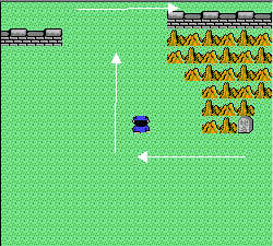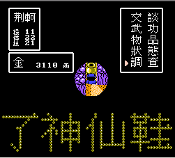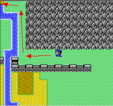 向东走,转向上,穿过沼泽地,有一店,可以到店中买东西,这里有千里马肝卖,可以加满体力和技力。但千万不要忘了买几个灯笼。