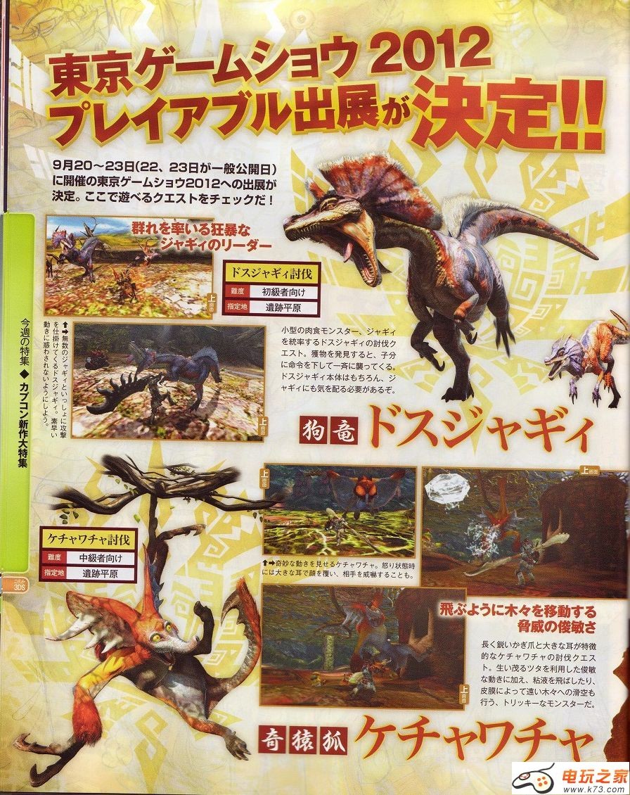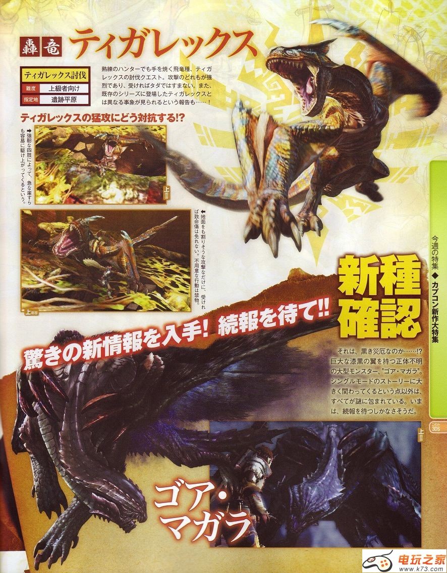 之后就是官方宣布《怪物猎人4》将会出展TGS2012,并且还将会在下次的报道中公布新怪物「哥亚.玛卡拉」的身份介绍。