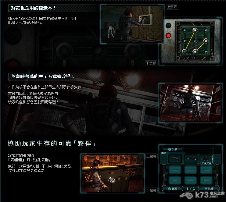 近日,Capcom方面公开了其预定发售港台版的中文游戏《生化危机 启示录》的繁体中文官方网站,本作也是系列首次的中文游戏化,而官方亲切的中文字游戏介绍相信也让很多玩家眼前一湿,下面就让我们来看看官网的具体介绍吧!