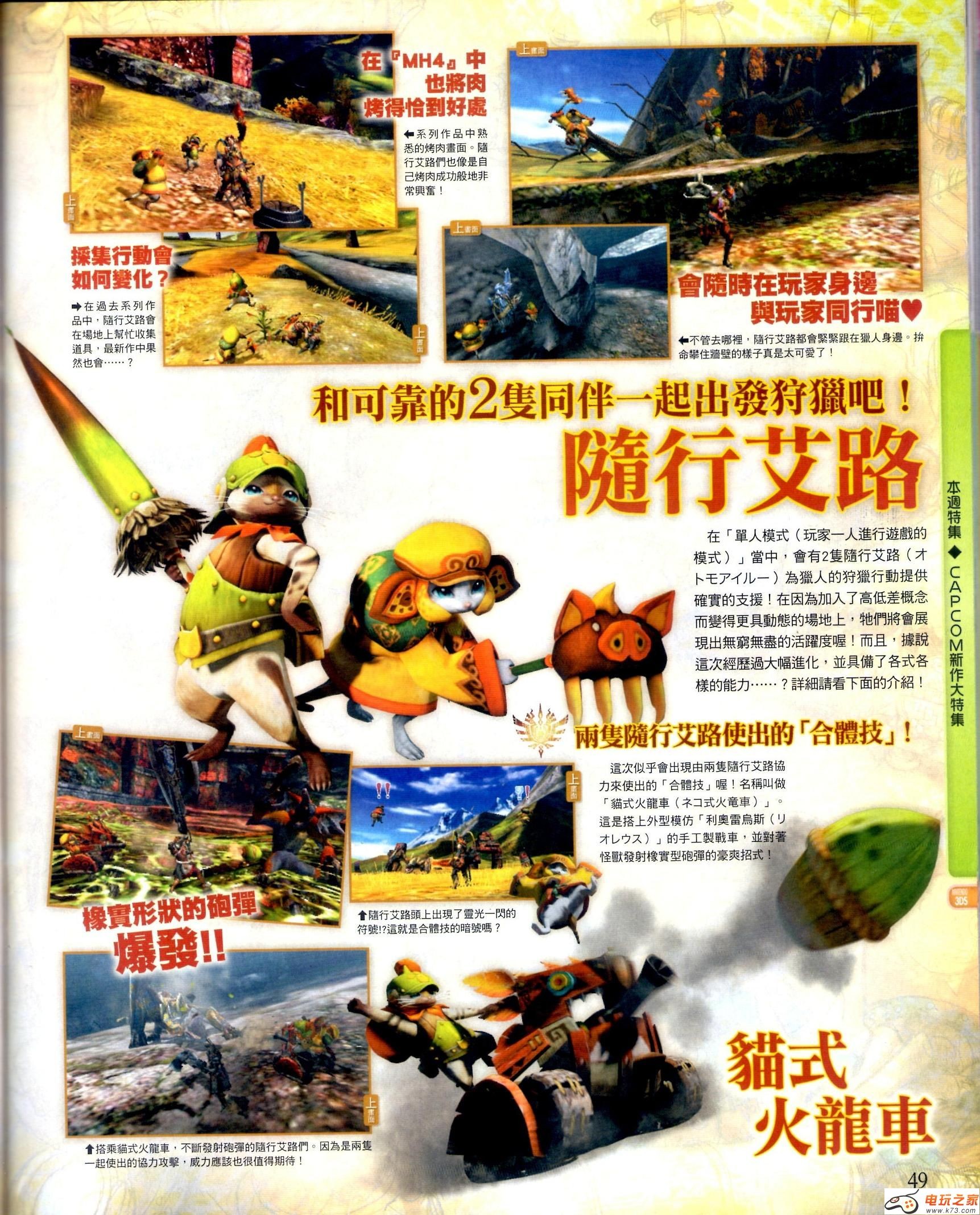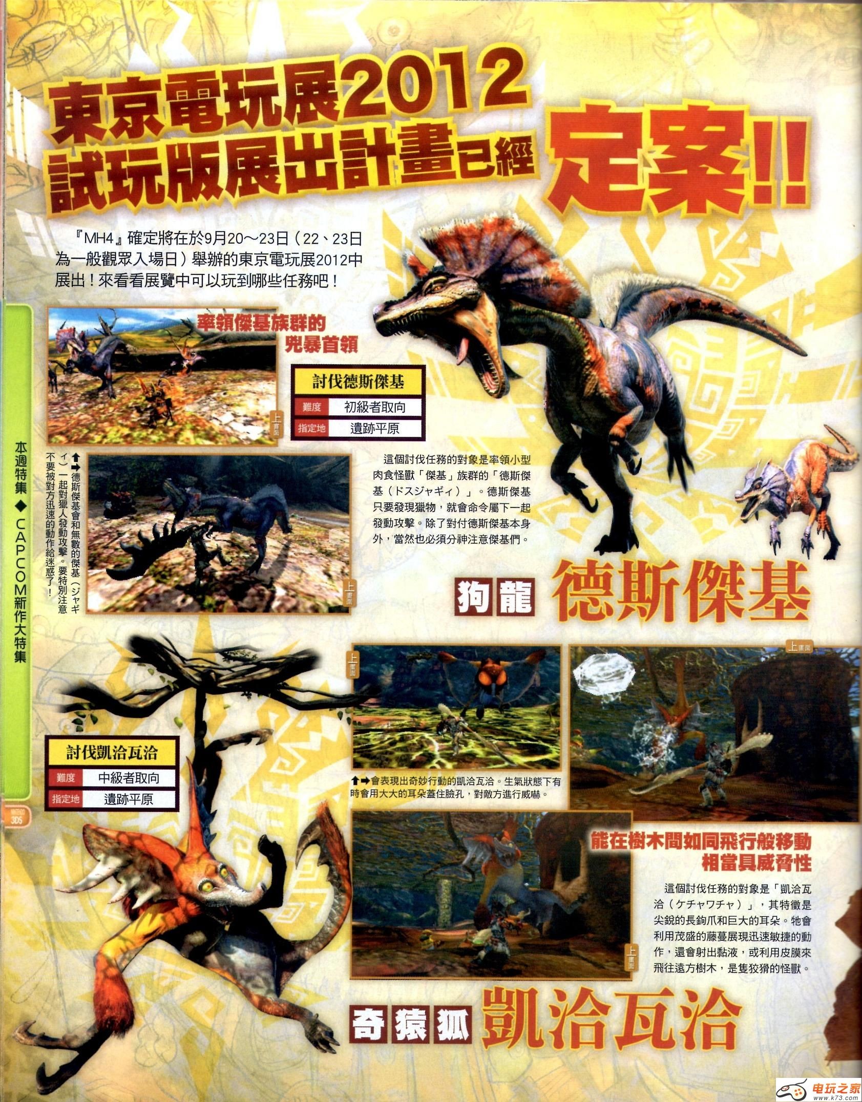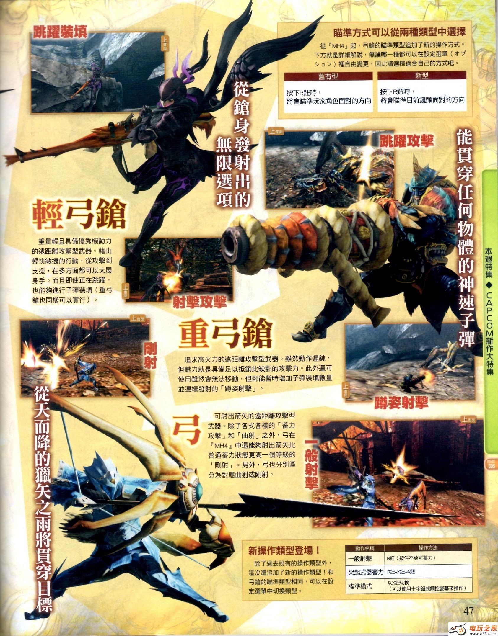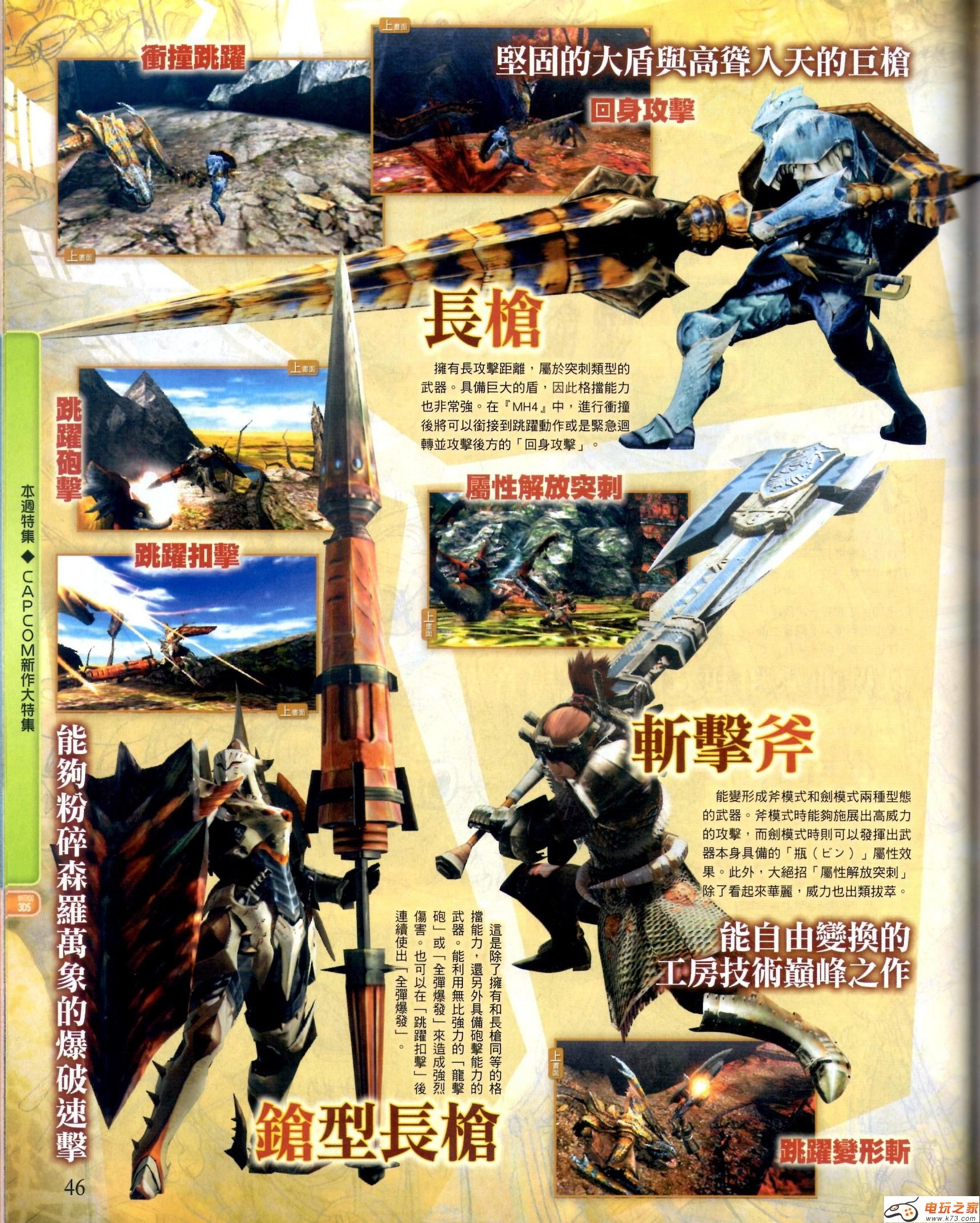 前两天我们为大家带来了本周fami通海量的关于怪物猎人4的新开操虫棍、高低差动作等的日文fami通杂志图,相信很多不懂日语的玩家一定想要知道杂志图的具体内容吧!下面就给大家分享一组杂志图的中文扫描图,为官方繁体中文哟!