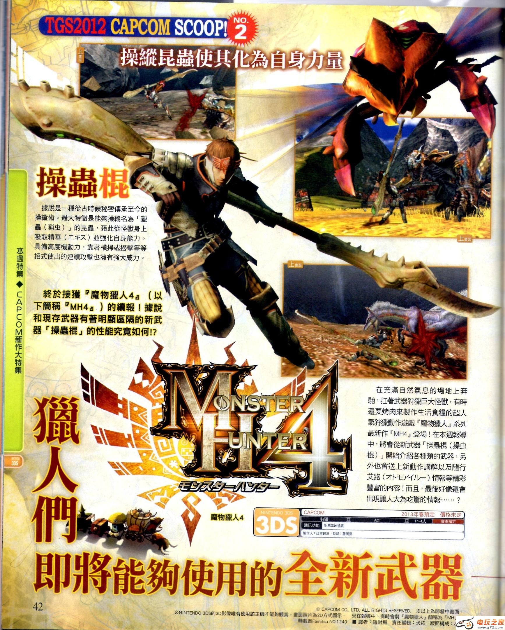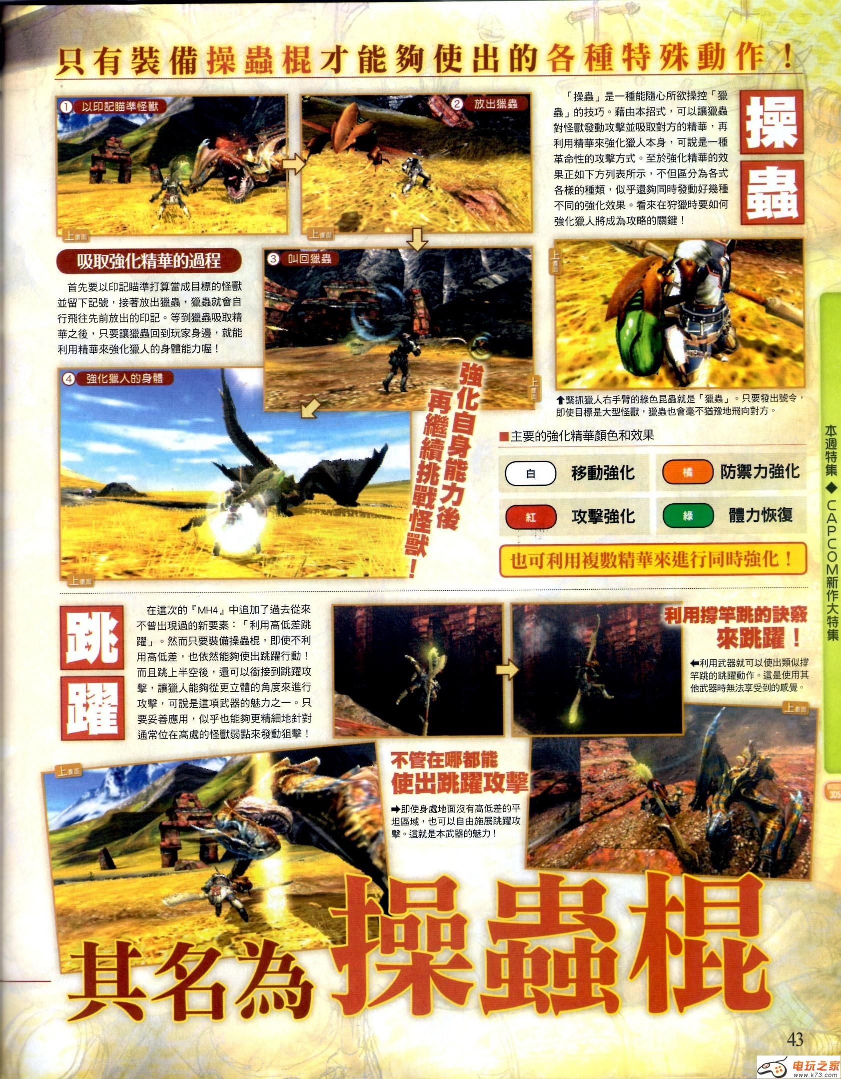怪物猎人4中文杂志图介绍:操虫棍 新武器 高低差动作等