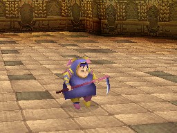 开战前罗莎装备弓箭助攻,丽迪亚装备法杖系武器(提升智慧增加召唤伤害)。纯粹的肉战。HP奇厚,缓慢向我军移动。一旦被他接近战斗形势会突然转变进入クラッシュダウンモード(毁灭模式),原本毫无难度的战斗变得很吃力。一开战马上对其施放施放スロウ(减速)或者扔くものいと,给我方全员挨个施放ヘイスト(加速)或者使用エルメスのくつ,然后对我方前面三个男人使用バッカスのさけ(狂暴)。丽迪亚开始就送它一个バイオ(毒魔法)让他进入HP滑落状态,其他人加满速度直接爆砍,丽迪亚使用召唤魔法进攻,不时用药。BOSS受到魔法攻击会使用せきかにらみ(徐徐石化)反击,要迅速使用きんのはり或者ばんのうやく解除。虽然有近十万HP但一般来说在它接近之前是完全可以解决掉的。
