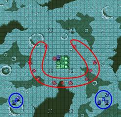 攻略要点: 一开始大和抚子号无法行动,所以艾斯特瓦利斯(エステバリス)小队不要远离大和抚子号,可以分别派万丈和主人公迎击敌人。五回合之后,大和抚子号就可以行动了。将敌人全灭之后又会有大批援军于A点登场,由于敌人属于超级系,命中率不高,因此艾斯特瓦利斯小队可以轻松应付。 |
