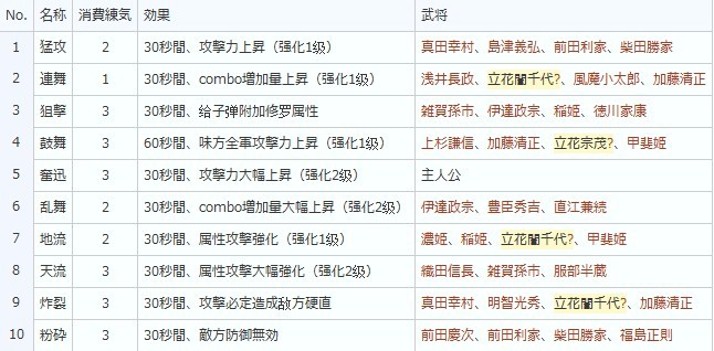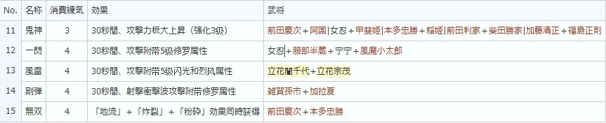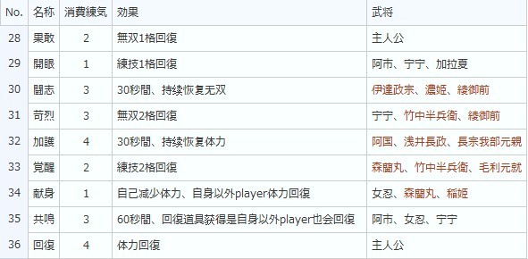 《战国无双:编年史2》友好度、技能、武将、关卡列表